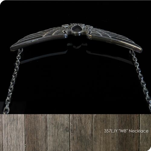 2014年 A/Wから登場のバードモチーフ ニューデザインを、手彫りで仕上げた重厚感たっぷりのシルバーネックレス。シルエット、爪、羽根の細部に至るまで、レーザーなどを一切使用していないネックレスヘッドは、立体感を際立たせる為、彫った部分に燻し仕上げを施しました。キラッとした輝きを放つ鏡面部分とのバランスも絶妙で、存在感と高級感を兼ね備えた珠玉の逸品です。同デザインをレーザー刻印したオリジナル桐箱にお入れしてのお届けとなります。